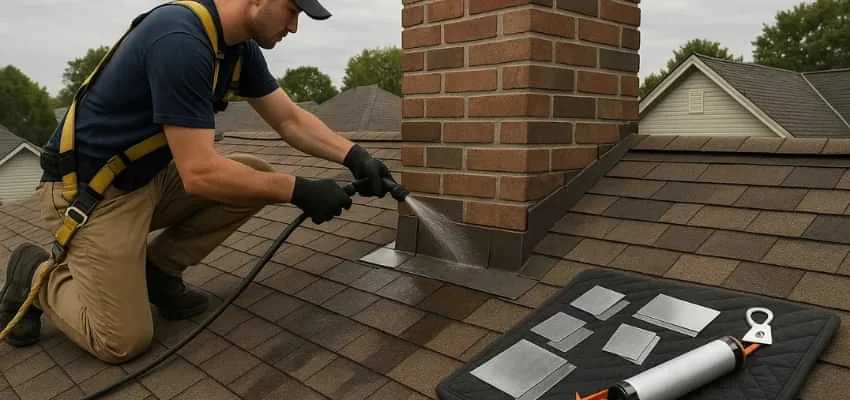 We examine crown slope, cap fit, mortar joints, brick or stone surfaces, and flashing transitions at the roofline. In Stratford Manor, McKinney this area is often the origin of leaks.